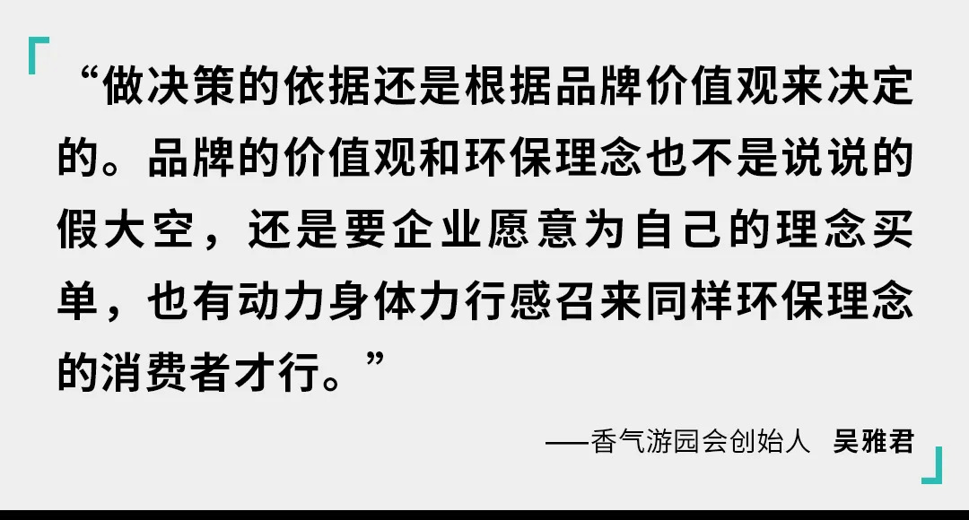 “我们包装成本确实是比最早不用FSC纸张贵了近3倍,但是因为我们的品牌价值观就是追求‘天地人和’,我们也觉得应该做一个务实履行社会责任感的可持续发展品牌。为了保护森林及大自然,我们的纸盒材料都尽量选择来自于负责任管理的森林体系。”香气游园会创始人吴雅君说道。