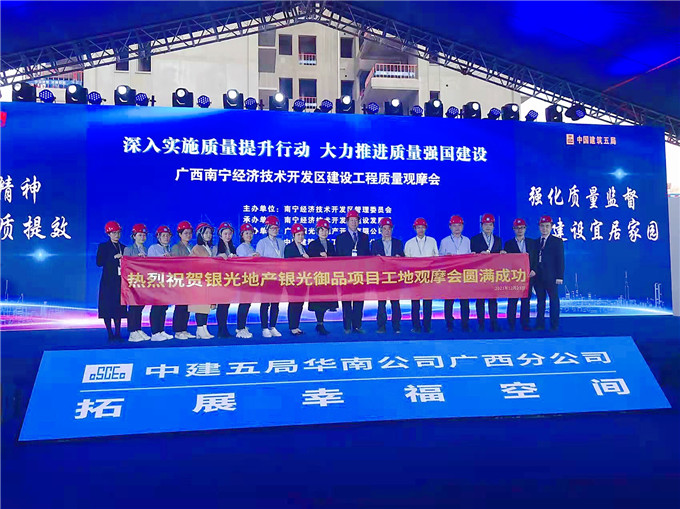 12月23日,由广西自治区住房和城乡建设厅主办,广西建设工程质量安全管理站、南宁市住房和城乡建设局、南宁经济技术开发区建设发展局承办的“第十三界广西建设工程质量技术交流大会暨样板观摩会”在银光御品项目召开,自治区住建厅市场监管处、广西建设工程质量安全管理站等领导及各建设、监理、施工单位代表共百余人参加活动。