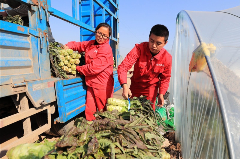 12月18日上午,姐姐余青青和弟弟余永斌在自家的基地将蔬菜装运上车(央广网发 高凌君摄)
