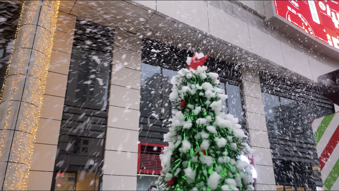 圣诞前夕,海口远大购物中心、友谊南海城、友谊阳光城更是通过人工造雪,让海口一夜之间下起了“大雪”,把节日氛围拉满。