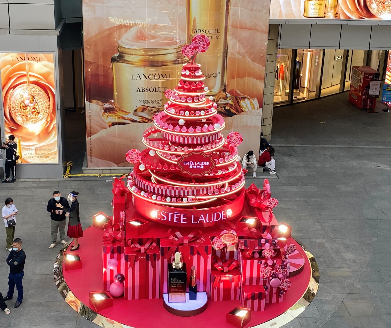 海口日月广场免税店提前设置专门的区域,布置圣诞场景,各品牌的香水、化妆品皆推出限时闪购活动,中免集团更推出“圣诞狂想曲”活动,限时派送100元无门槛券、700元香化类券,部分商品参与3件7折等活动。还有蔻伊、雅诗兰黛等品牌打造圣诞主题快闪店,并在广场中庭摆放圣诞树造型的礼盒套装,吸引不少市民、游客驻足挑选、打卡。