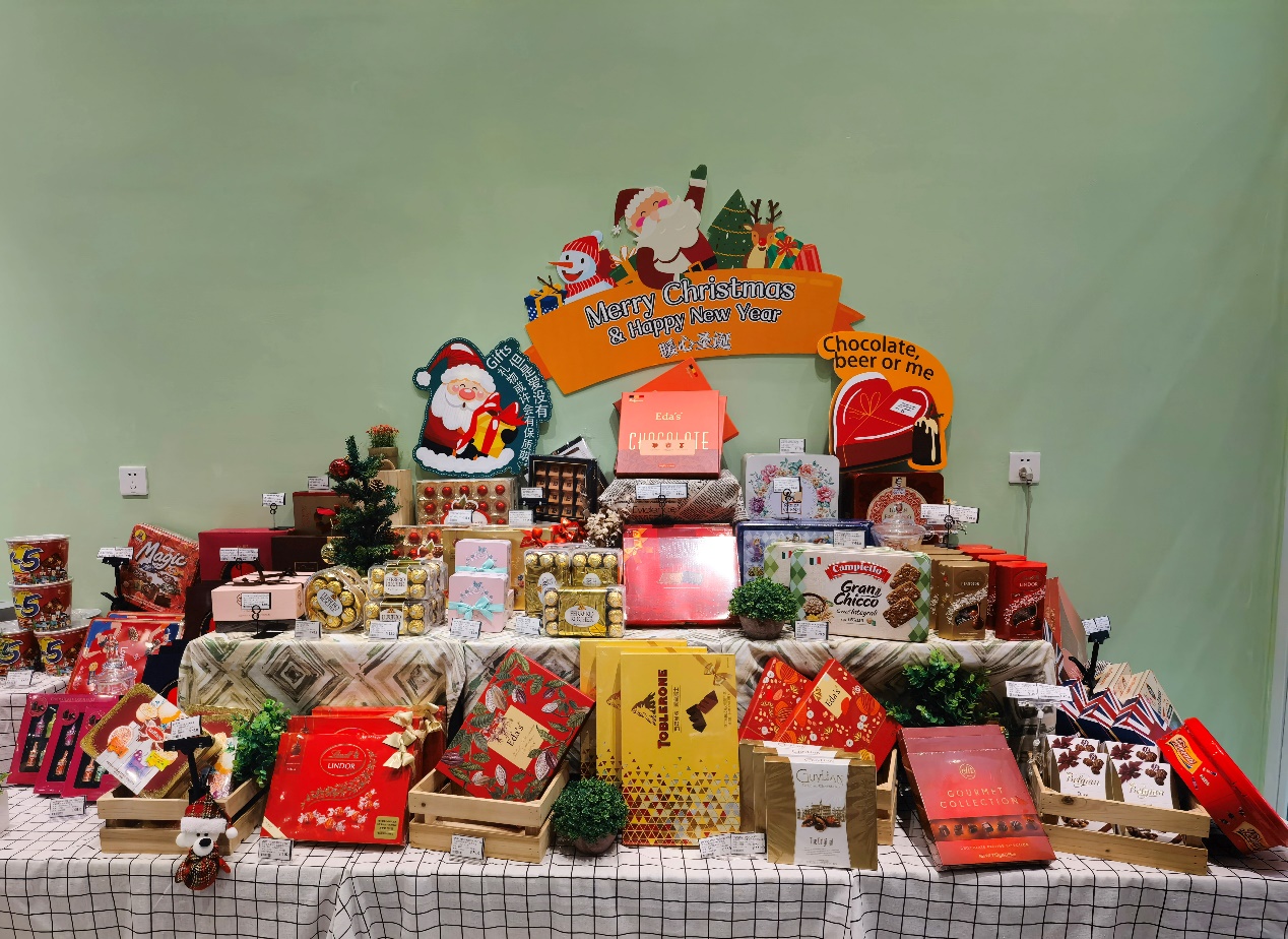 除了售卖带有圣诞元素的商品外,商家还根据消费者的喜好设置了诸如圣诞巧克力等专区。海口友谊南海城万国小厨一名员工透露:“设置这个展区,的确会有许多顾客冲着节日氛围前来购买巧克力。”
