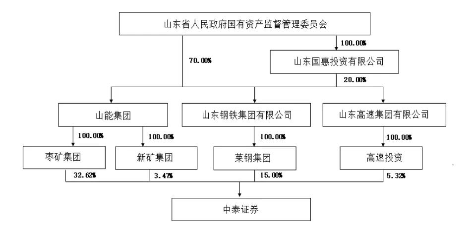 本次股权变动后,山东省国资委仍是中泰证券的实际控制人。股权关系结构图如下: