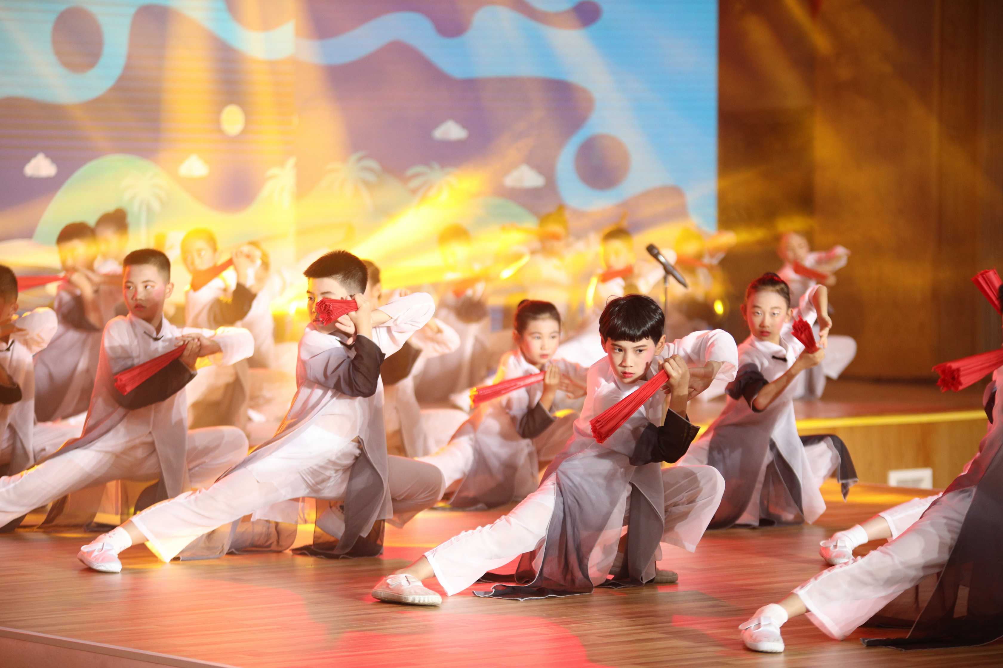 现场,自贸港体育小记者们用原创快板的方式,为大家花式讲述了奔跑吧少年系列活动:“海南发展要腾飞,奔跑少年把梦追。我是健康奔跑者,自贸岛建设需要我。”倡议青少年要让体育在心中生根发芽,簇成更强健的体魄,更坚实的力量,做自贸岛的健康奔跑者;而酷炫的体育舞蹈让大家眼前为之一亮,同学们将花样篮球、体育舞蹈融入表演中,点燃现场;国风歌舞《少年中国》将武术、琼剧、黎族舞蹈融为一体,少年们展示的是中华民族传统文化,更展现出“爱国、爱海南”的情怀。活力满满的运动小达人们用体育舞蹈、原创曲艺、国风歌舞等多种多样的艺术形式,展示了海南青少年们热爱运动、乐享健康、积极向上的精神面貌。