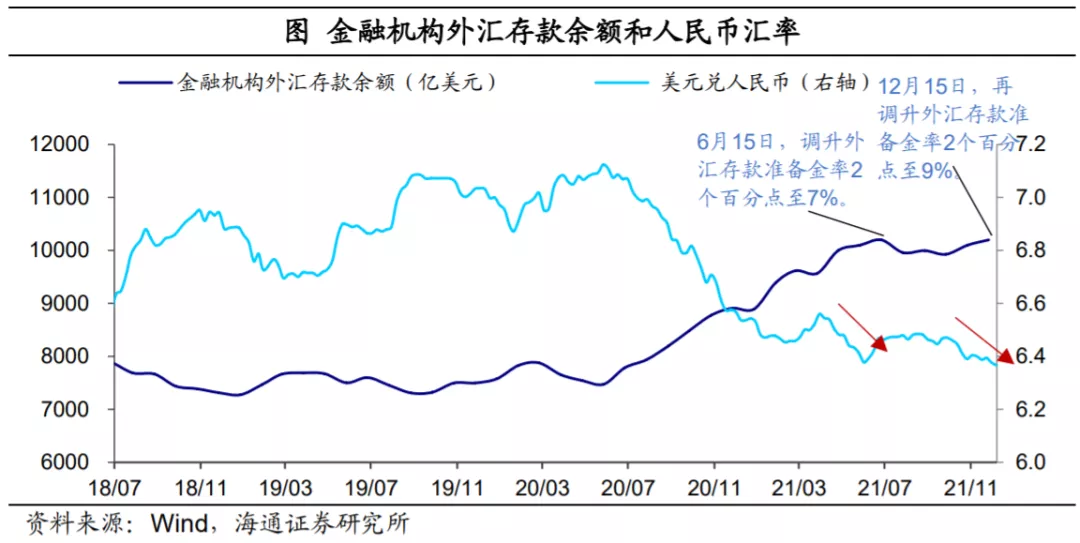 这也可以解释为何去年以来人民币汇率持续强势:外汇净流入大幅增长,但多数由居民企业和银行部门持有,使得我国出现了境内外汇流动性的持续过剩。相当于人民币的供给变相偏紧了,人民币汇率自然就明显走强。而提高外汇存款准备金率,就是收紧了境内外汇供给和流动性,可以缓解人民币升值的压力。