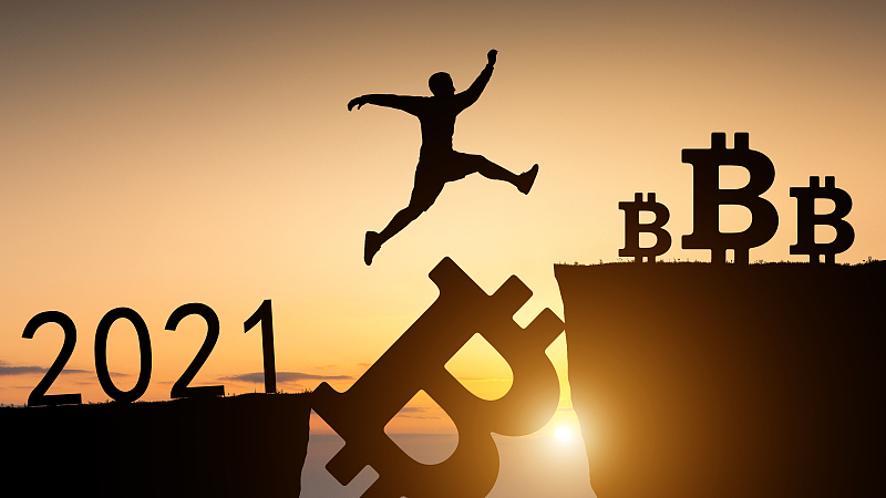 回到2021年初,比特币延续2020年末的涨势不停,一举站上2万美元关口,打破了2017年创造的历史高点。但随着特斯拉购买比特币的重磅消息席卷全球,比特币价格的飙升并未停止,在4月达到了6万美元的高度。