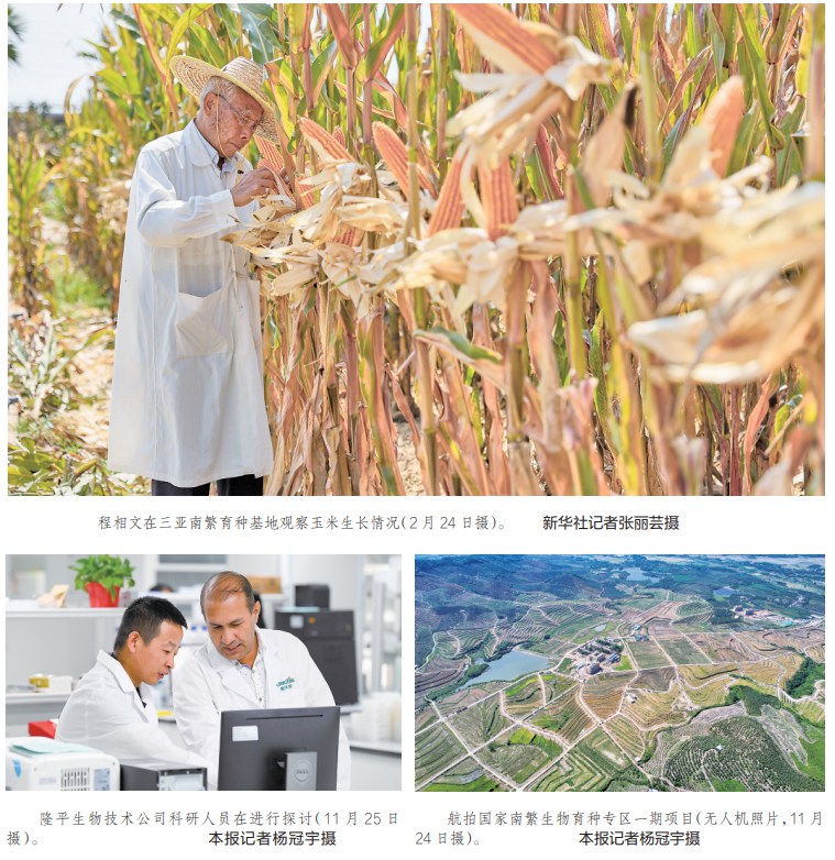如今,全产业链协同创新在这里不断上演。“平台建起来,项目动起来,人才留下来。”中国农科院国家南繁研究院院长彭军说,中国农科院正在加快南繁研究实体化建设,已创建7个南繁科研创新团队、10个成果转化团队,今年新增南繁科研经费达4000万元。