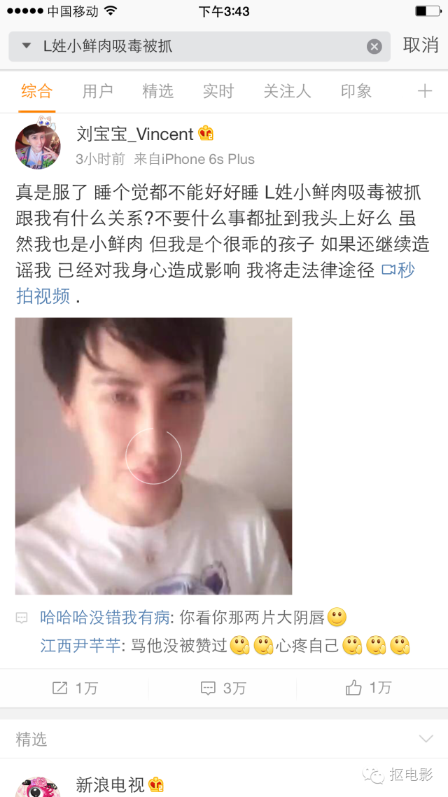 网络博主,蛇精男刘梓晨自认小鲜肉,把被黑对象往自己身上揽,并发视频斥谣言,也是醉!