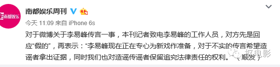 南都娱乐周刊也在第一时间致电峰峰经纪团队,对方坦率回应:假的!