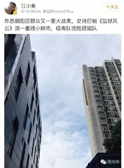 而网友江小鱼的发文称:“昨悉朝阳群众又一重大战果,史诗巨制《监狱风云》添一重磅小鲜肉,吸毒队完胜嫖娼队”
