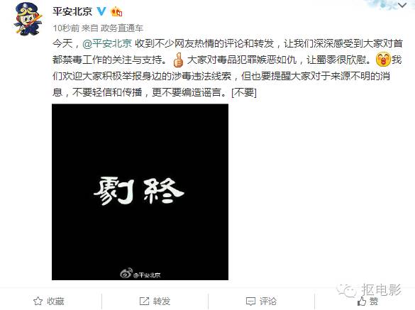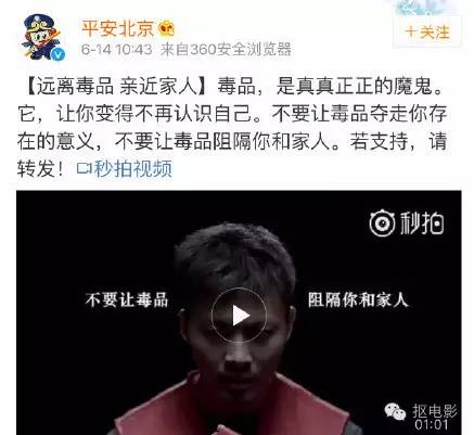 而一向作为吸毒新闻风暴眼的平安北京冒出一条很抓马的微博:远离毒品的一则广告