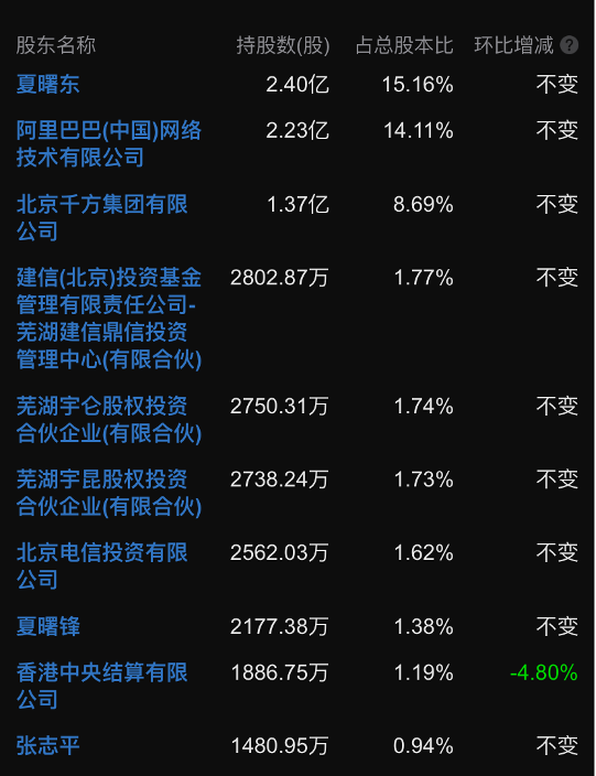 据悉,千方科技主要从事智慧交通和智能物联业务,夏曙光为公司控股股东、实际控制人,2021年三季度公司营收26.28亿元,归母净利润为4874.27万元,截至2021年9月30日,其前十大股东如下: