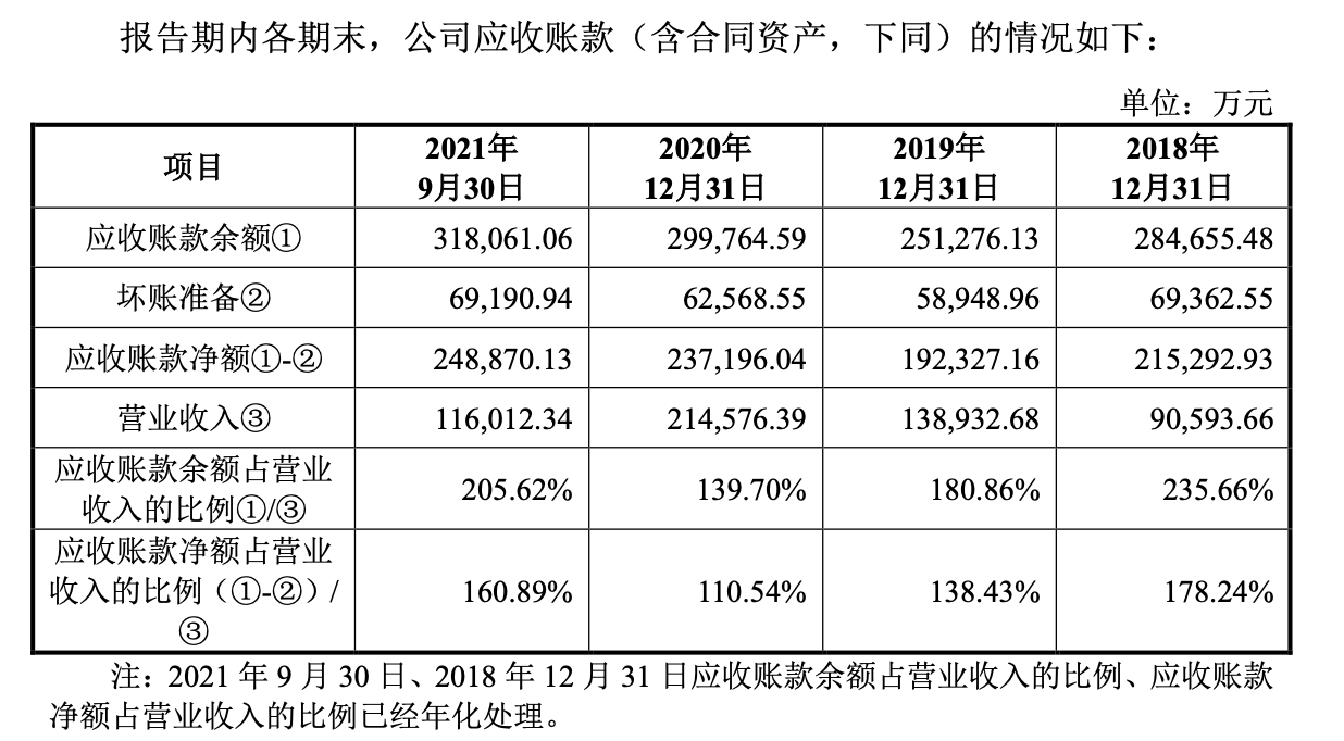 但好在对公司经营活动产生的现金流整体并未产生较大影响,2018年4-12月至2020年期间,其净额分别为1.72亿元、5.86亿元、4.28亿元,而2021年1-9月则由正转负,变为-2.44万元。