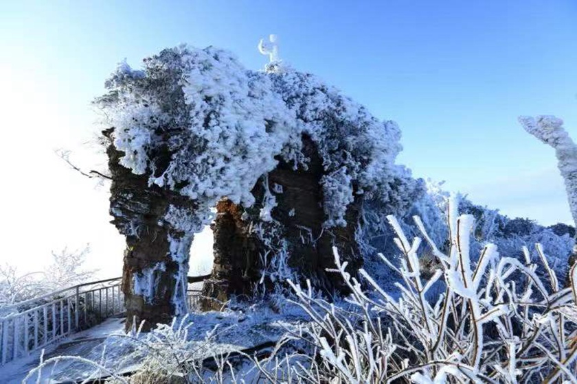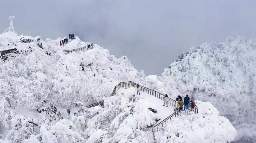 近日,随着气温骤降,位于四川省巴中市北部米仓山腹地,川陕交界处的光雾山白雪覆盖,漫山遍野的雾凇冰挂如万树盛开的银花,犹如冰雪童话世界。目前,第七届四川光雾山冰雪季已经开始啦,诚邀广大游客“喜迎冬奥会,嬉雪光雾山”。