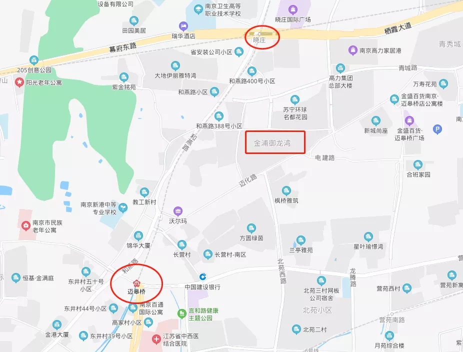 此外,项目位于和燕路390号,距离项目最近的应该是在建的7号线晓庄站,其次才是1号线迈皋桥站;并且目前迈皋桥片区,一号线北延项目仍在进展中预计2023年完成,和燕路过江隧道也在如火如荼的施工中力争在明年年底前通车,所以迈皋桥当前仍有大量路段处于施工状态中,目前交通上处于一个较为拥堵的状态。