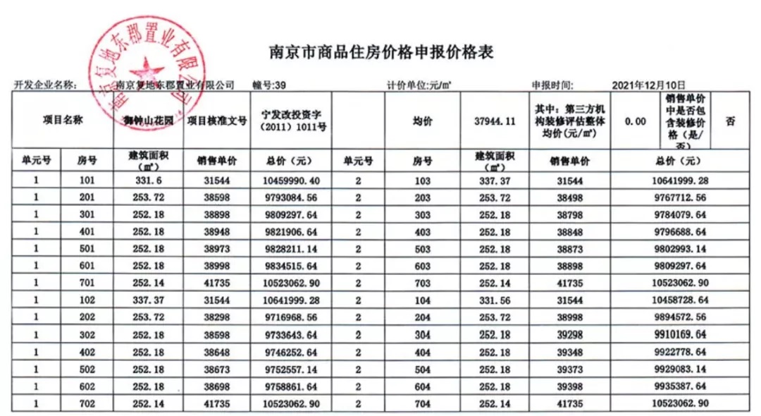 根据一房一价表显示,其中最贵一套总价高达1064万!
