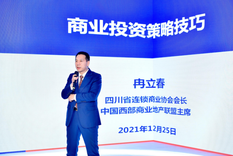 本次发布会,还特别邀请到四川省连锁商业协会会长冉立春,站在商业角度,以丰富的知识储备、自身经验、独特角度进行了商业投资策略技巧分享。