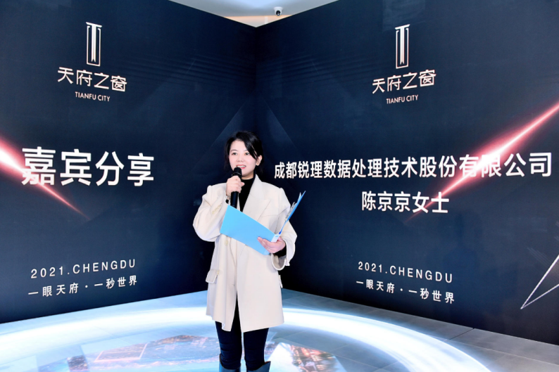 值得一提的是,在发布会上,成都锐理数据处理技术股份有限公司总监陈京京上台,对天府新区投资环境和未来趋势做了价值解读。以2020年天府新区GDP达3561亿这组数据,展示天府新区的发展神速,并通过天府总部商务区的6大投资价值与潜力,表达了对天府新区这个区域发展的看好。
