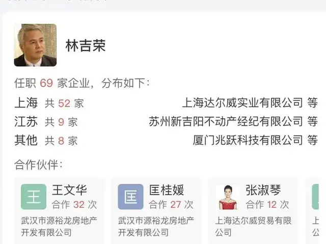 而林瑞阳(本名林吉荣)在国内,包括达尔威在内,名下共有69家企业,与张庭存在部分重叠,有关地产业务的企业居多,且大部分公司,疑似实际控制人最终同样指向领扬科技。