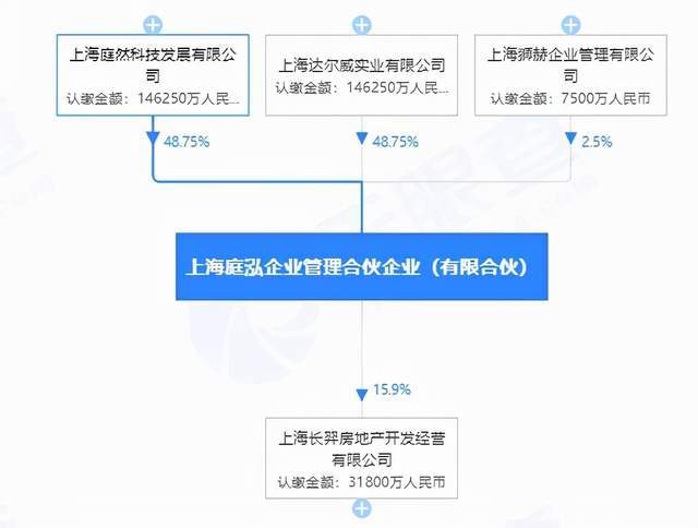 今年11月17日,据上海市土地市场消息,长宁区天山路街道113街坊34丘E2-03地块由上海长羿房地产开发经营有限公司、上海长鹂企业发展有限公司联合竞得,成交价格为50.9亿元。资料显示,上海长羿注册资本20亿,其中上海庭泓企业管理合伙企业(有限合伙)占15.9%,为第三大股东,而上海庭泓正是张庭夫妇的控股企业。