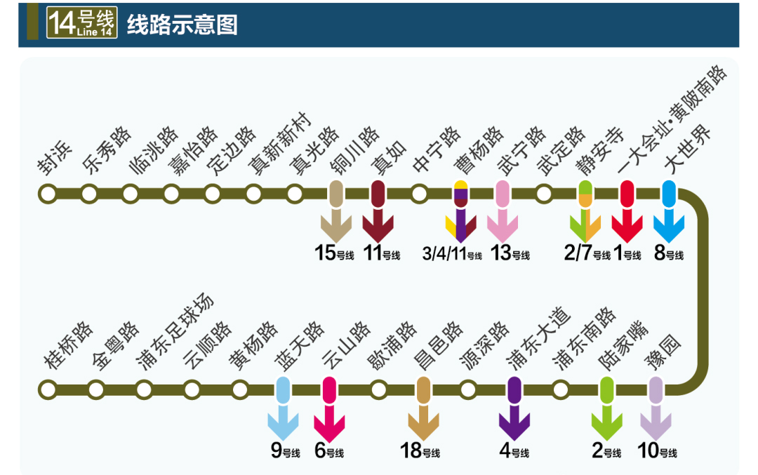 新线开通后,又会增加多座换乘车站。18号线一期北段共设9座换乘站,14号线共设13座换乘站,包括“虚拟换乘”的曹杨路站。在曹杨路站换乘3、4、11号线需出站再进站,持交通卡或“Metro大都会”App免费换乘。