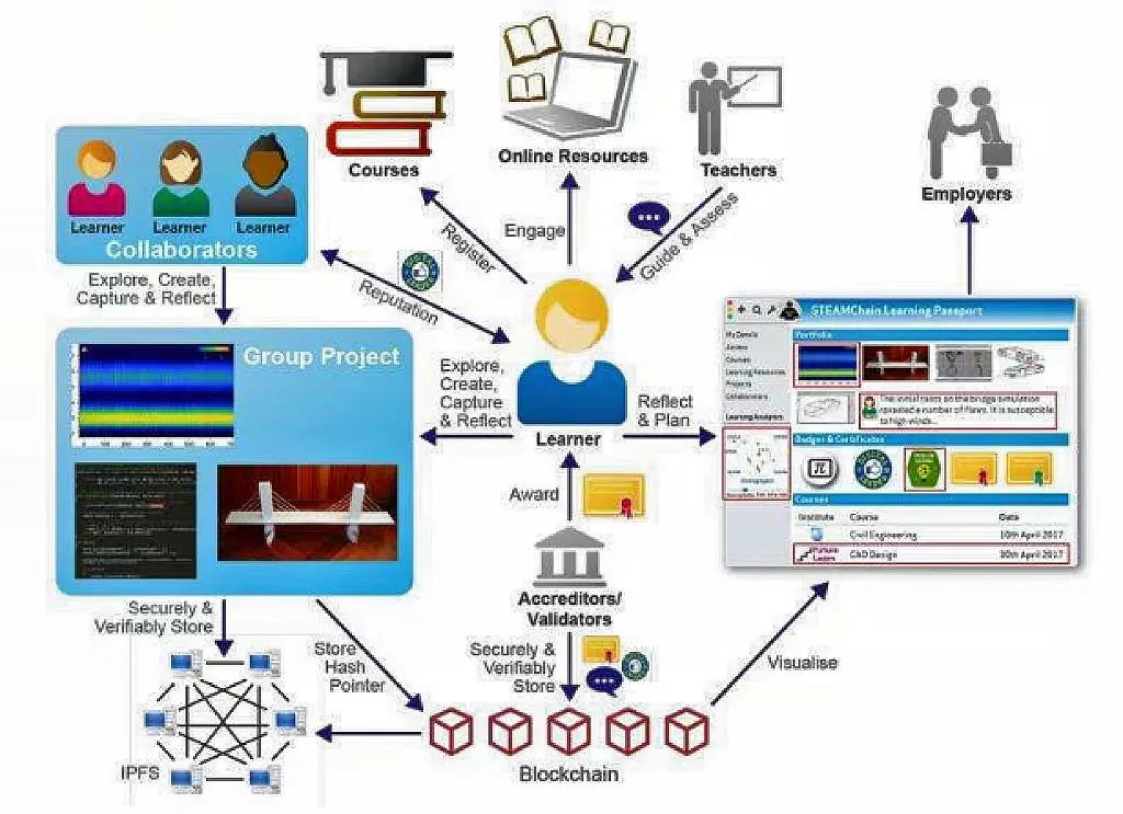 四是构建安全、高效、可信的开放教育资源新生态。近年来,开放教育资源蓬勃发展,为全世界的教育者和受教育者提供了大量免费、开放的数字资源,但同时也面临版权保护弱、运营成本高、资源共享难等问题。而区块链技术的应用,有望成为解决上述难题的「利器」。区块链公开透明的特点,可以用于加强资源版权保护;区块链技术的去中心化,可以被应用到 OER 建设中,节省大量中介成本;利用区块链的分布式账本技术,促进资源共享……区块链的应用,可以推动开放教育资源向更高层次发展。