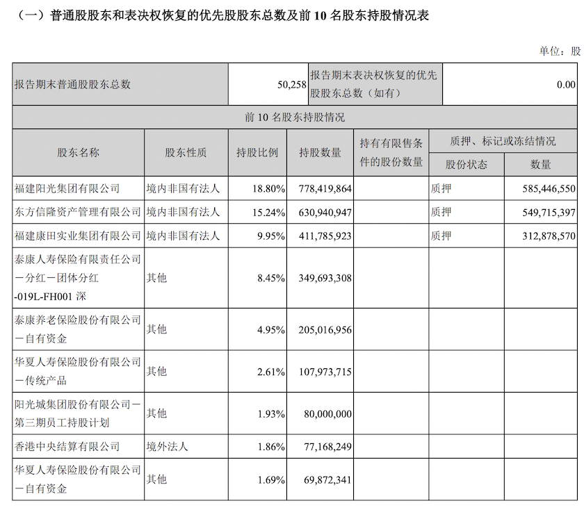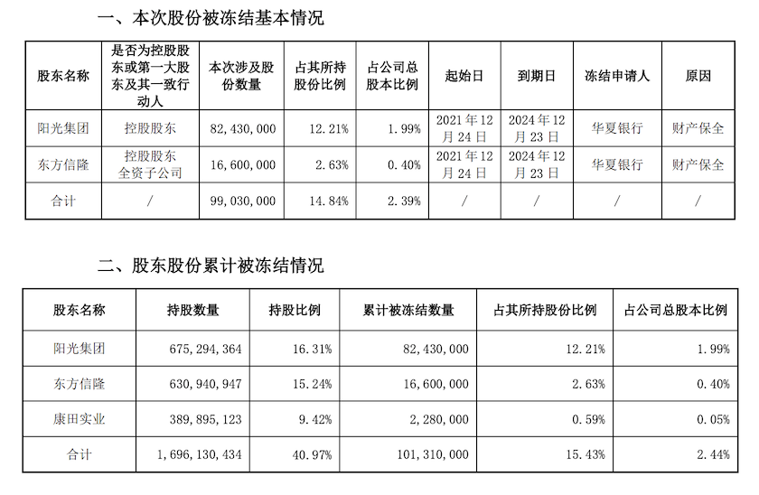 阳光城控股股东福建阳光集团部分持有股份被冻结。
