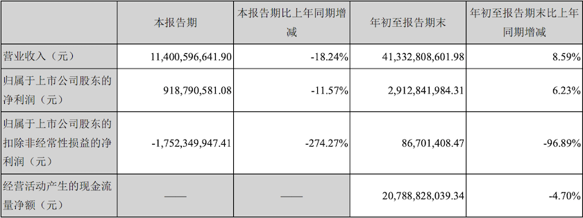 2021年10月,阳光城发布2021年第三季度财报,显示实现营收114亿元,同比下降18.24%;归母净利润为9.19亿,同比下降11.57%;扣非净利润亏损17.52亿元,同比下跌274.27%。