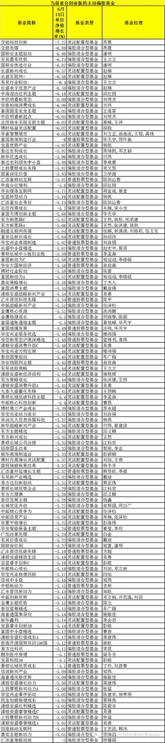 在上述净值大幅杀跌的基金中,不乏知名基金经理的身影,如赵宏宇、蔡宾管理的长盛中小盘精选,任泽松管理的中邮战略新兴产业、中邮核心竞争力,彭敢管理的宝盈睿丰创新,李会忠管理的新华鑫利等。