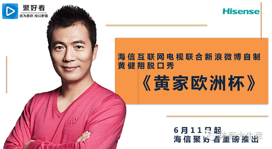 就在欧洲杯揭幕前,海信再次发布重磅消息:海信互联网电视已与知名足球评论员黄健翔达成合作,在欧洲杯期间联合新浪微博推出自制足球脱口秀《黄家欧洲杯》,将围绕欧洲杯的球队、话题、事件,为中国球迷带来最专业最犀利有趣的评球节目。