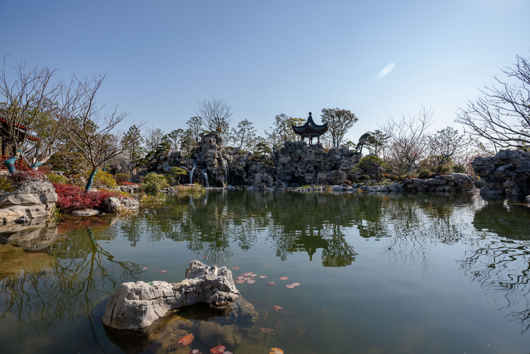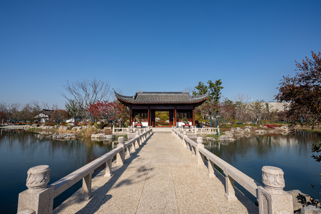 申园是上海世博文化公园中独具江南园林文化特色的园中园,园内掇山理水、筑房建桥,总体规划形成北山、南水、东园、西苑的空间布局,山环水抱之中的建筑群落呈现明清时期江南传统园林风格。在现代时空里,营造一座经典的江南园林,以表现江南之态,传达江南之魂,创一代沪上新名园、中国园林新典范。