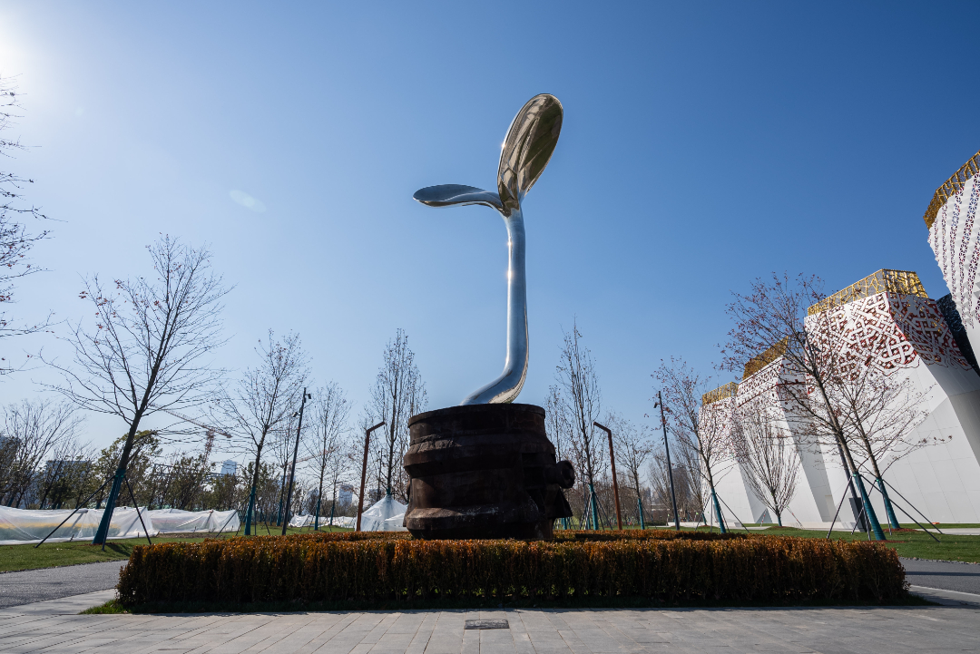 从13号线世博大道站4号口出站,步行两三分钟就能来到上海世博文化公园的东入口。