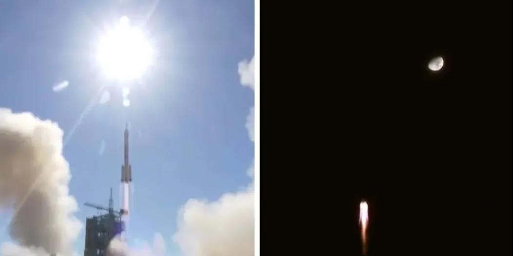△左图:6月17日,神舟十二号发射升空。右图:10月16日,神舟十三号发射升空。