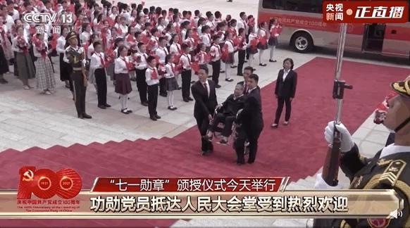 “七一勋章”获得者的入场方式让人泪目,多位是被抬进人民大会堂的。