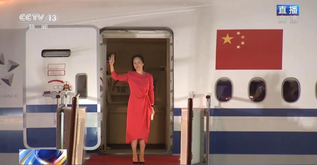 9月25日晚,孟晚舟乘坐的中国政府包机抵达深圳宝安国际机场。在央视新闻的直播画面中,那一抹红色分外鲜艳夺目。