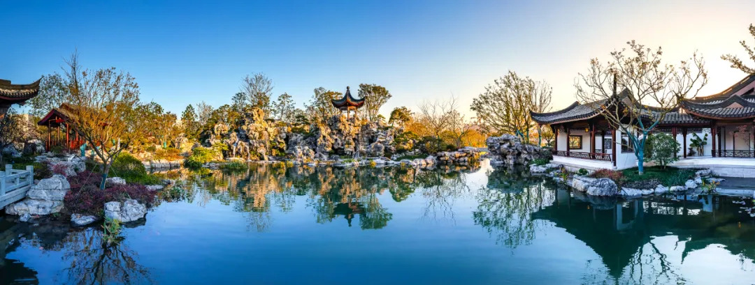 总占地5公顷的申园是上海世博文化公园中独具江南园林文化特色的园中园,园内掇山理水、筑房建桥,重点打造了醉红映霞、古柯晚渡、玉堂春满、松石泉流、曲韵天香、秋江落照、烟雨蓬莱、荷风鱼乐等八景,充分展现江南园林一步一景、移步换景的造景特色。