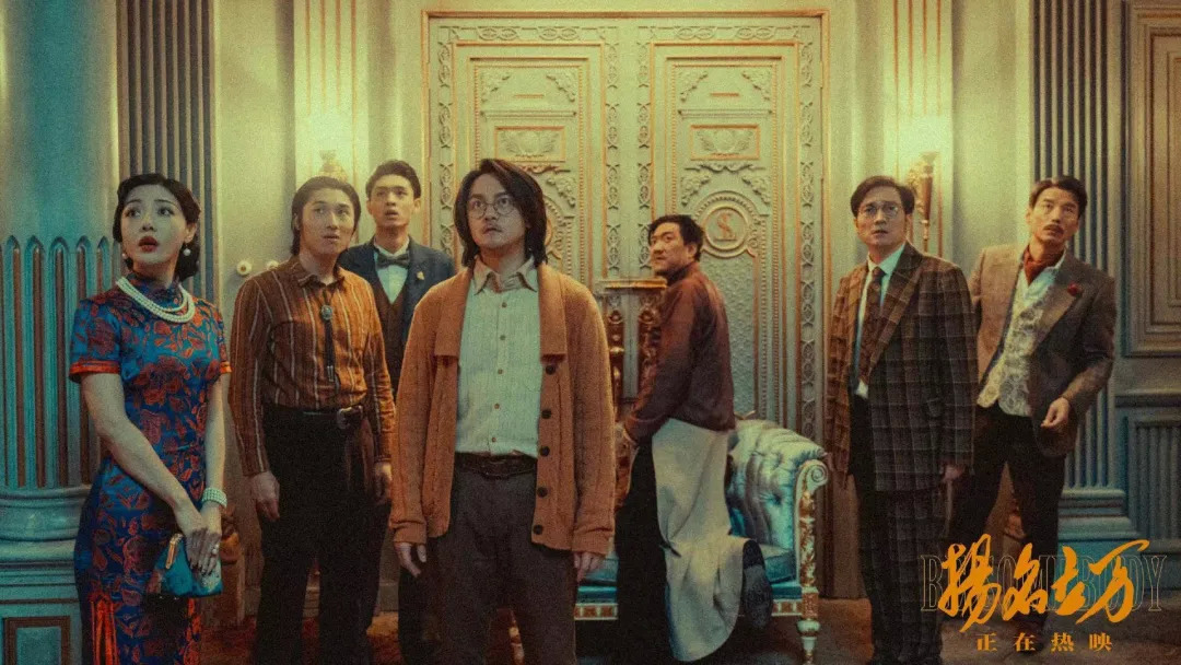 典型的万合天宜风格的无厘头搞笑,加上密室中的探案剧情,让观众很容易联想到当下正火热的剧本杀。尽管这部影片筹拍于2018年,导演甚至根本没玩过剧本杀,但有意无意的巧合依然给《扬名立万》起到助推作用。