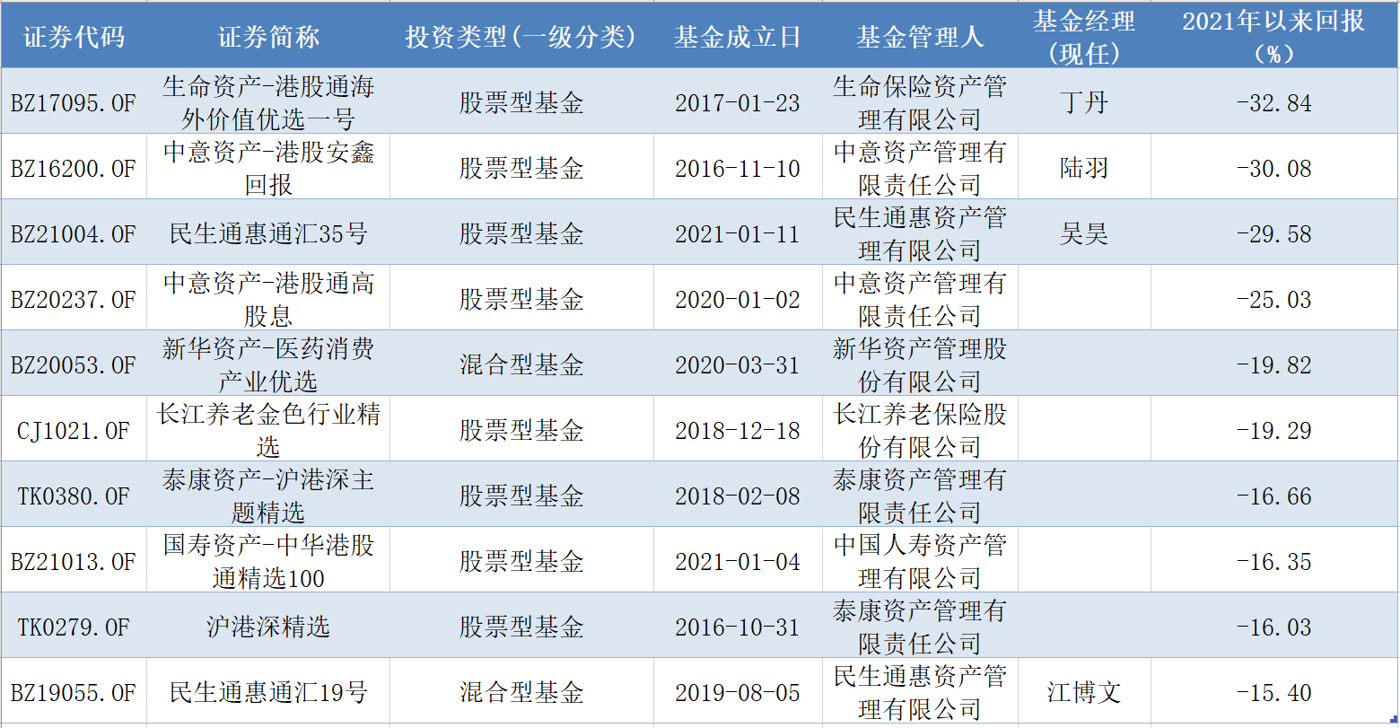 相比之下,多只投资港股的产品遭遇重挫,排名倒数前十的产品中,6只产品与港股连接。生命资产-港股通海外价值优选一号领跌,全年回报-32.84%。中意资产-港股安鑫回报、中意资产-港股通高股息、泰康资产-沪港深主题精选、国寿资产-中华港股通精选100、泰康资产-沪港深精选跌幅都在16%以上。