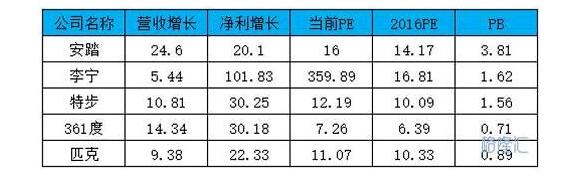 纵观2015年中国体育用品行业,安踏体育的净利润增长也是最低的。(如下图)