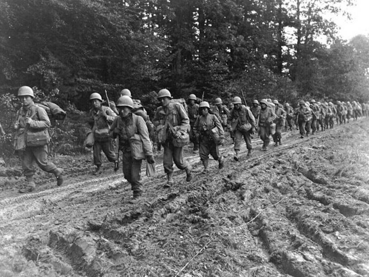 美国陆军在二次大战中发挥了关键性作用,1944年6月6日诺曼底登陆中,陆军是美国军队的主力。↓