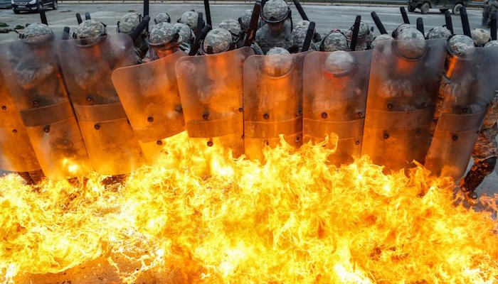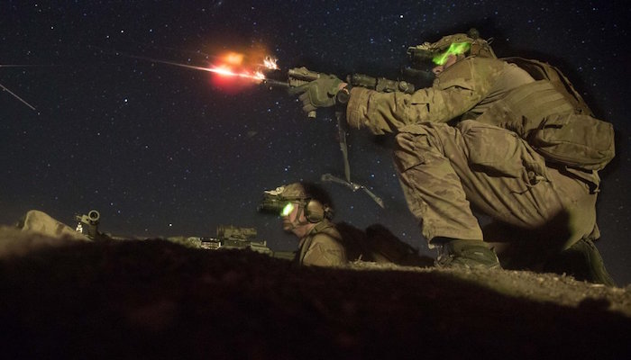 美国陆军也经常进行海外部署,帮助培训友国部队。下图是在科索沃军事行动预备演习中,查理连的士兵进行克服火焰恐惧的训练。地点是德国Hohenfels的多国联合预备中心。↓