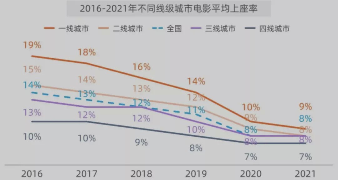 一、观影人次倒退再加上常态化防疫管控,导致上座率下滑比较明显。2021年,上座率仅为7.6%,这无疑加大了影院的生存压力;