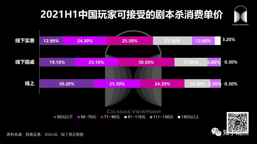 而一场剧本杀的花费,消费者的在线下的接受度主要在人均50元到90元之间。