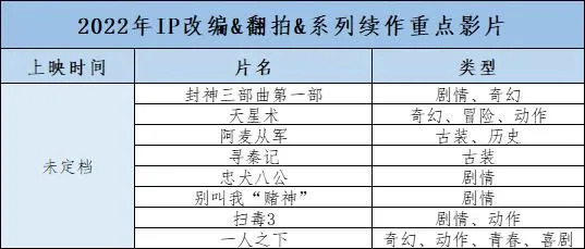 这一百部新片,或许很难在今年内全数如期而至,但却已经足够唤起我们对新年度的期待。愿它们,能够在2022年为电影市场与电影行业带来更多的“不同凡响”。