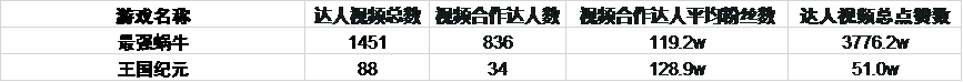 在营销模式上,《最强蜗牛》更为看重新兴渠道,比如抖音、B站等。DataEye数据显示,《最强蜗牛》投放了1451个达人视频,合作达人836个,达人视频总点赞数超3700万,各项指标远超《王国纪元》。