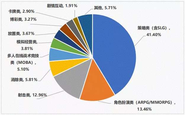 从中国移动游戏出海情况来看,策略类游戏最受欢迎,收入占比达41.40%,角色扮演类游戏的收入占比达13.46%,两类游戏抢占了一半以上的市场份额。