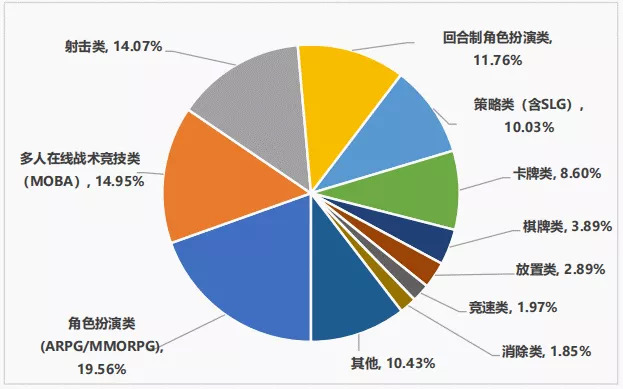 图:收入排名前100移动游戏产品类型收入占比,来源:《2021年中国游戏产业报告》
