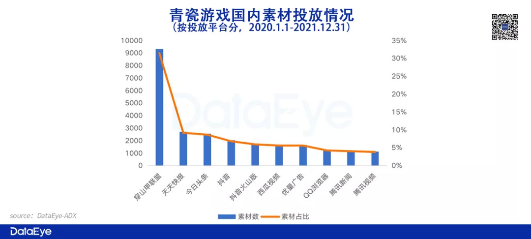 相较IGG,青瓷游戏投放渠道的集中度更高,排名第一的渠道穿山甲联盟占比超30%,而IGG投放最高的单一渠道天天快报占比16.47%。