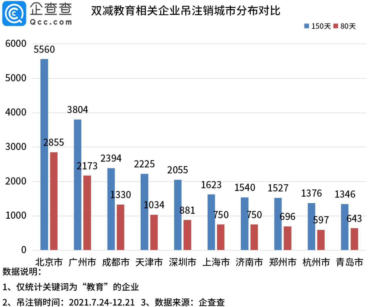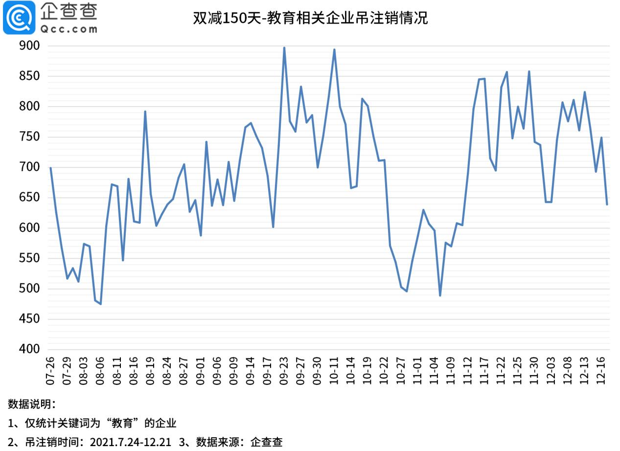 双减落地150天内,总吊注销教育企业超7万家,平均每天超465家