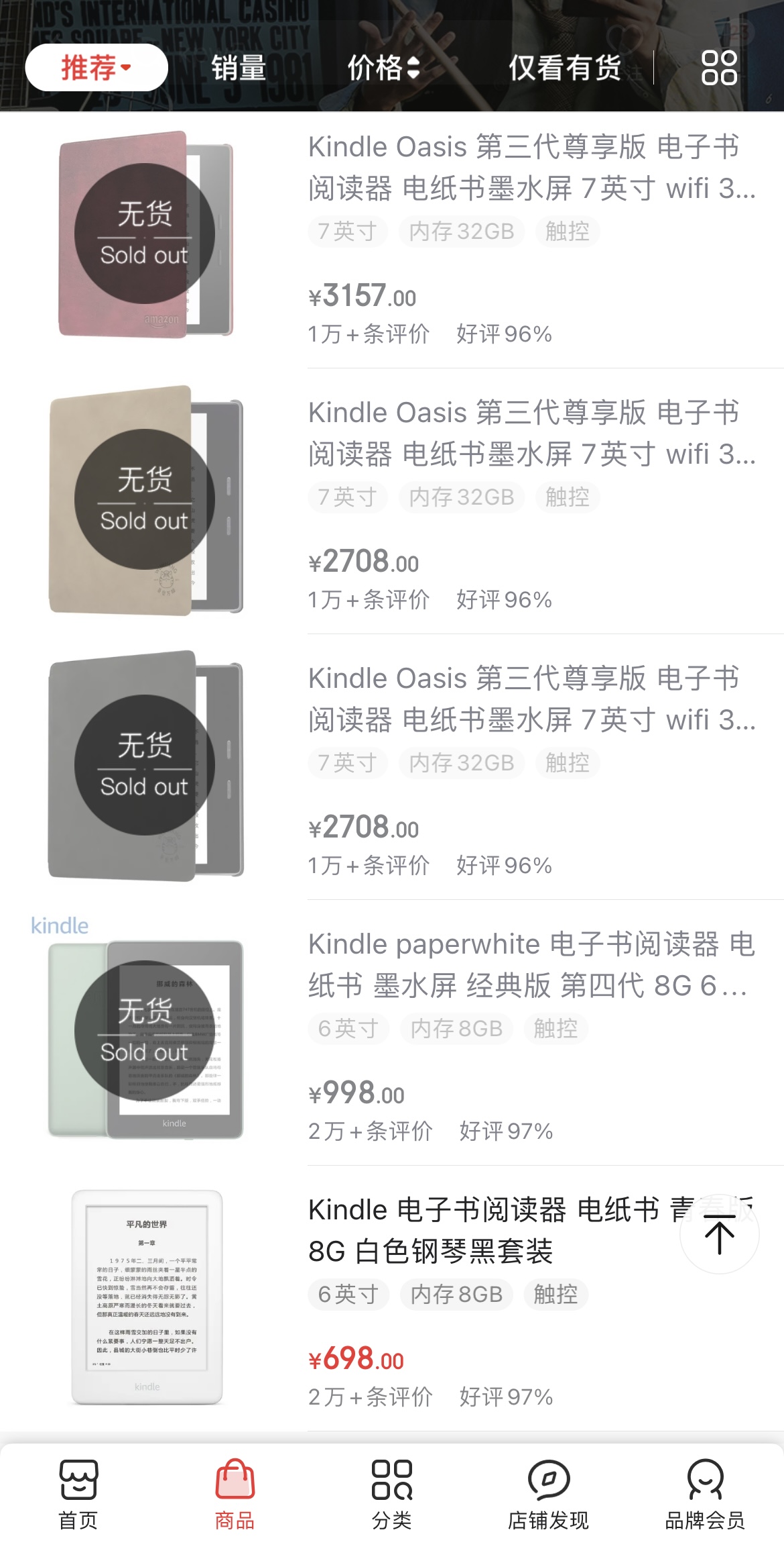据了解,目前Kindle在淘宝的官方旗舰店已关闭,京东自营旗舰店则仅余一款2019年3月发布的电子阅读器仍在售,其余Kindle paperwhite等都显示售罄状态。